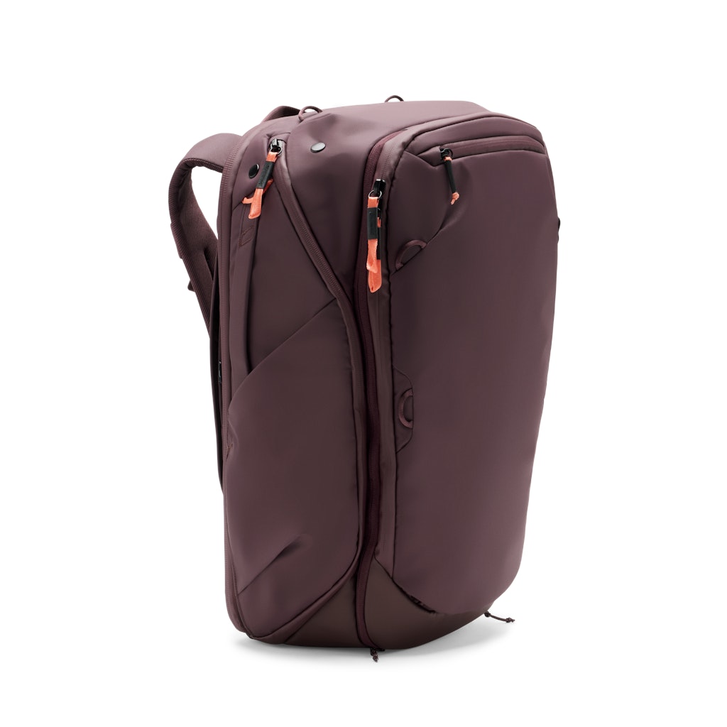 Peak Design Travel Backpack 45L’nin en güçlü yanlarından biri, çantayı yere koymadan eşyaya ulaşmayı kolaylaştıran çoklu erişim düzenidir. Arkadan geniş açılan kapak, ana bölmeye hızlı ve güvenli giriş sağlar; çift yan erişim ise özellikle fotoğraf ekipmanı taşırken ritmi bozmadan kullanım sunar. Ön panel fermuarı küçük düzen alanları yaratır. Üstteki yumuşak astarlı cep, pasaport ve gözlük gibi hassas parçalar için idealdir.