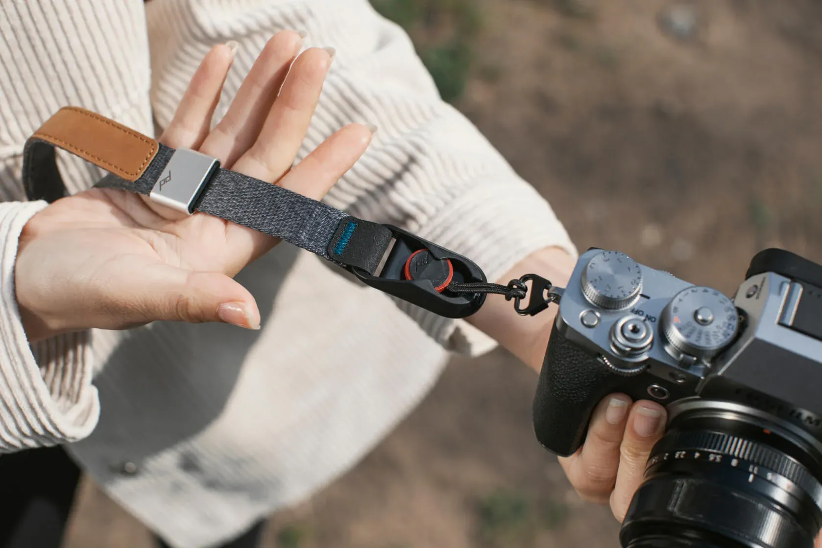 Cuff, yeniden tasarlanmış anotlanmış alüminyum ayar mekanizması sayesinde bilekte mükemmel uyumu sağlar. Açık halka pozisyonunda kilitlenerek elinizi kolayca geçirmenize olanak tanır. Daha sıkı ve güvenli bir kullanım için ayar mekanizmasını çekerek kayışı bileğinize tam oturtabilirsiniz. Bu ayarlanabilir yapı, 13 cm’den geniş avuç içlerine kadar farklı bilek ölçülerine rahatlıkla uyum sağlar. Kullanılmadığında ise Cuff, entegre manyetik kapak sayesinde bileğinizde şık ve pratik bir bileklik olarak taşınabilir. Bu özellik, fotoğrafçılar için hem estetik hem de fonksiyonel bir çözüm sunar; Cuff her zaman elinizin altında ve hazırdır.