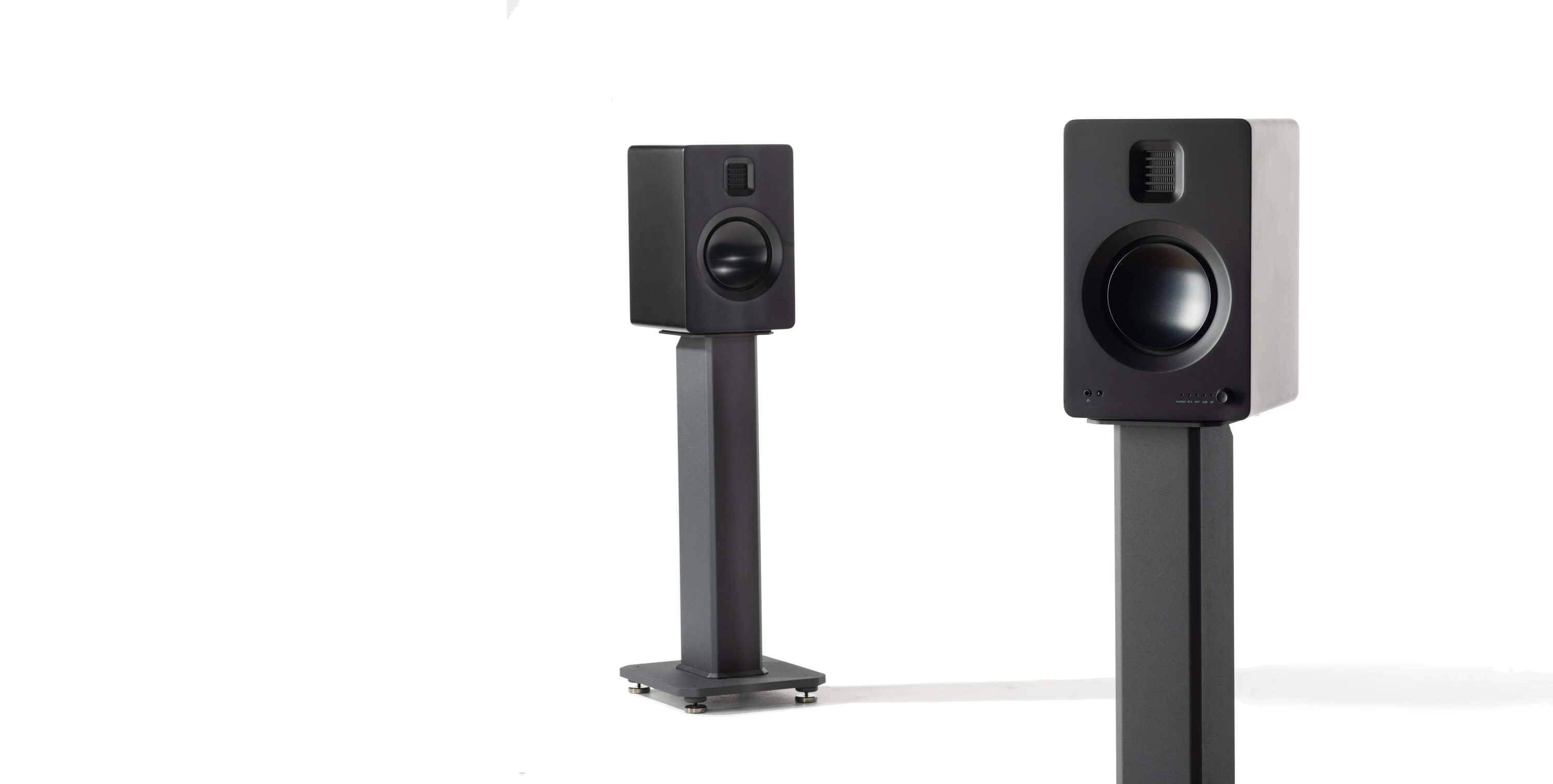22 inç yüksekliğinde, dolum yapılarak titreşimi azaltan siyah standlar. İzolasyon ayaklarıyla net ses sağlar.